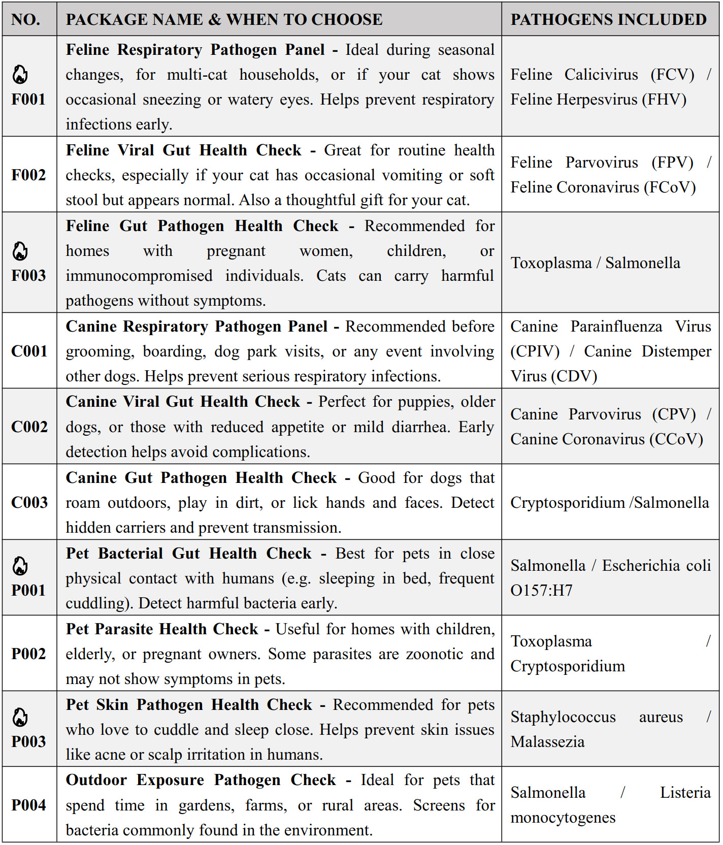 ✔ Comprehensive: Covers 20+ pathogens, including human-transmissible diseases